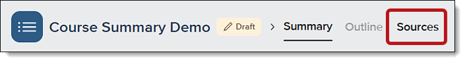 Your course sources can be managed under the Sources tab to the right of the Course Outline. From there, you can add a new source or remove an existing source.