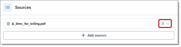 Your existing sources will be listed and to remove a source, you can click the trash bin icon to the right of the source file name. A confirmation message will pop up where you can confirm to remove the existing source or cancel the request.