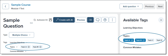 In this example, the distinction is Topic A versus Topic B. This could be expanded if a course needs other distinctions, it's best to limit the number of sub audiences (attribute values) to no more than 6.