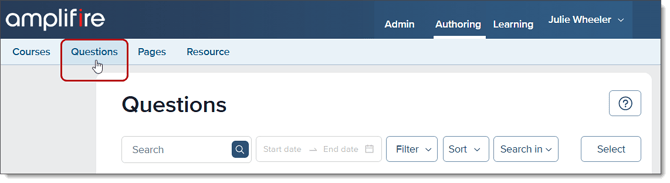 To access the Questions List, click on Questions at the top of the page to view all questions in your account.