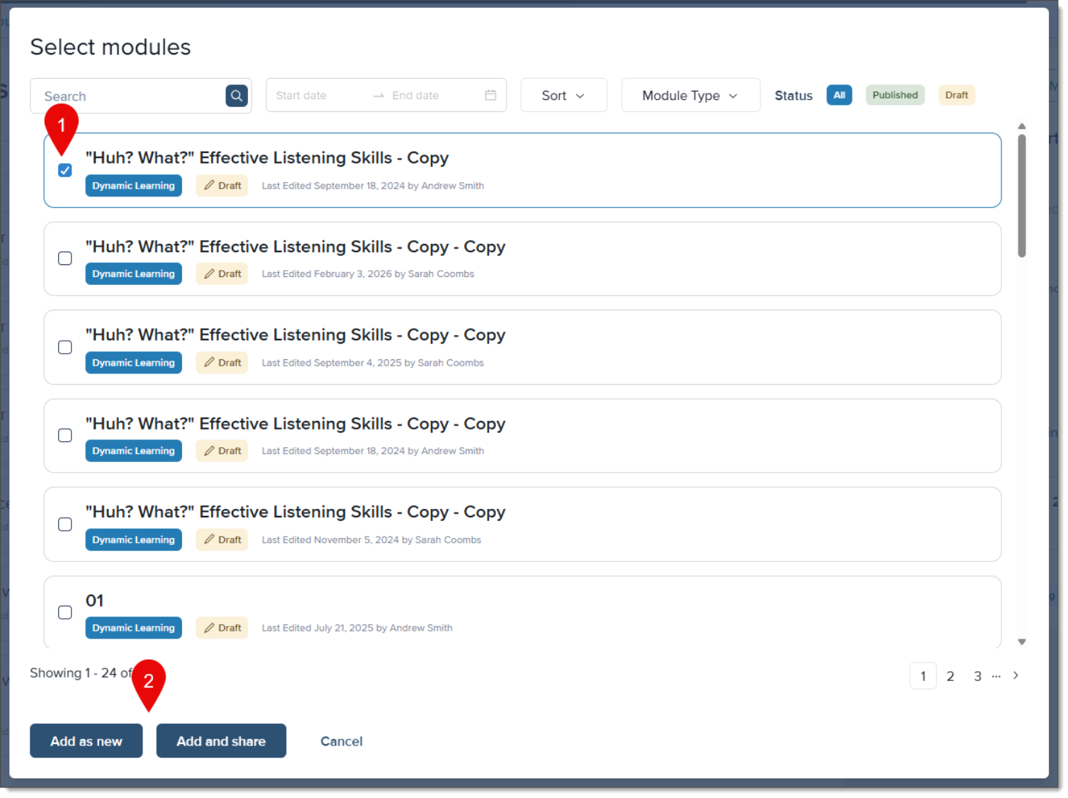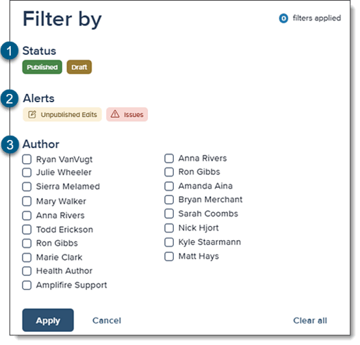 Filtering questions by alerts can help you find questions that might need work, or that have had edits made since the last time they were published.