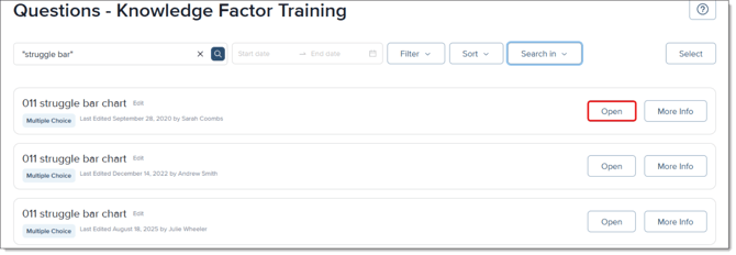 This is especially helpful if you have multiple copies of a question and the one you want is published (or draft).