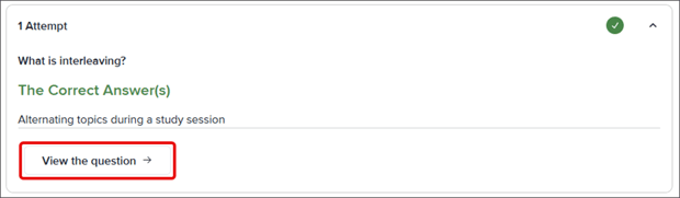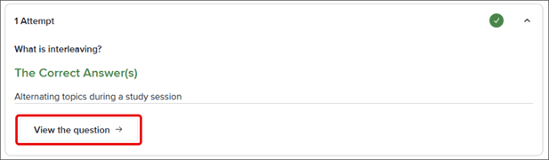 From there, click View the question which will take you to the specifics of each question and its associated explanation.